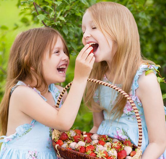 Erdbeeren enthalten mehr Vitamin C als Orangen und gehören zu den Früchten mit den wenigsten Kalorien. Bereits 150 g reichen aus, um den Tagesbedarf zu decken. Sie stimulieren die Immunabwehr durch ihren Gehalt an Provitamin A sowie die Zellerneuerung durch Vitamin B9, das vor allem für Schwangere unentbehrlich ist. Sie enthalten außerdem eine große Menge an Magnesium, Kalzium und Eisen.