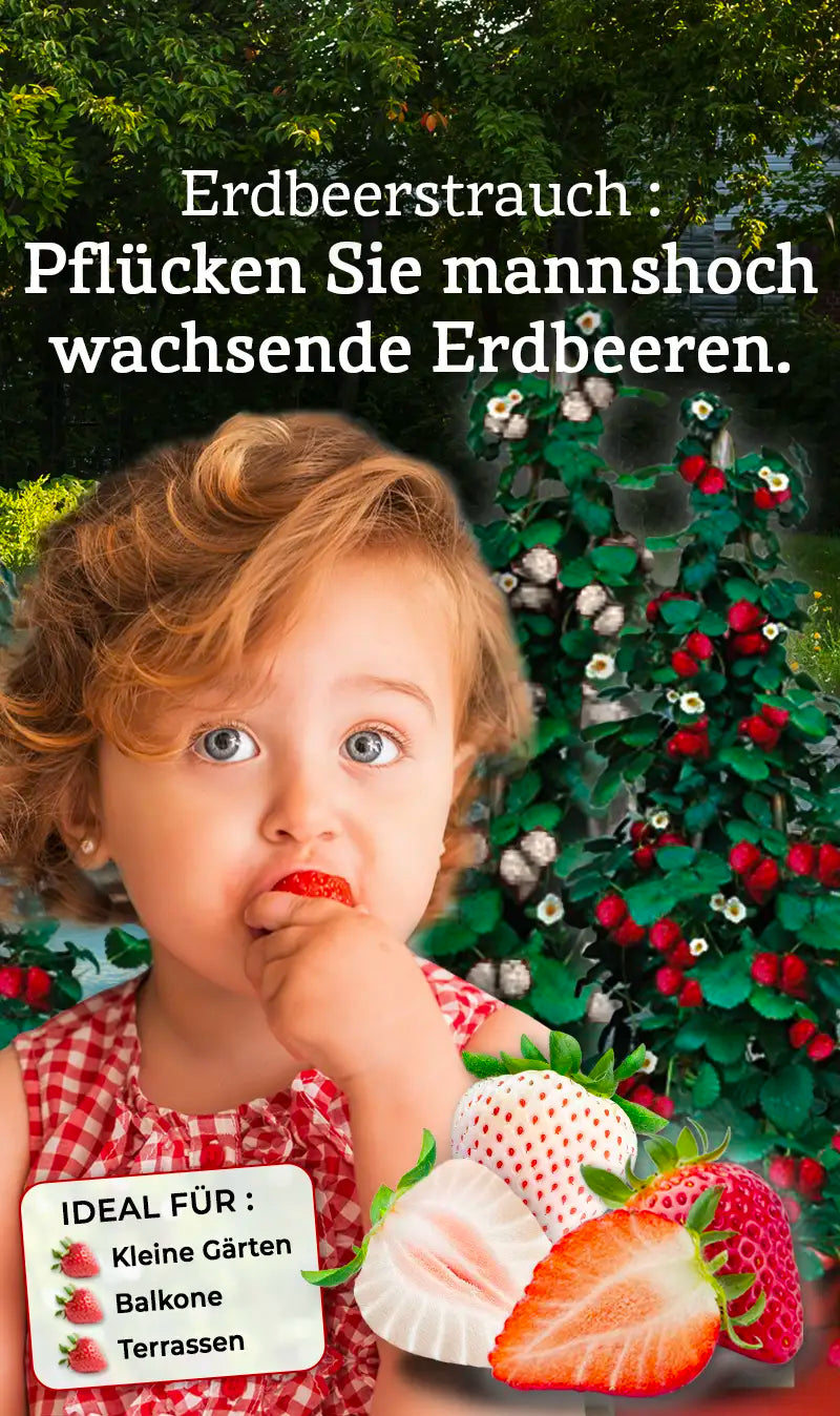 Ihre Kinder werden mit Begeisterung die großen, saftig-süßen Beerenfrüchte Ihrer Klettererdbeere ernten, die sie leicht erreichen können und die beim Ernten zudem auch sauber bleiben, da ihnen keine Erde anhaftet. Sie ernten bis zum ersten Frosteinbruch, also noch lange Zeit nach der üblichen Saison, außergewöhnlich aromatische Früchte mit hoher Geschmacksintensität. Die Erdbeerpflanze ermöglicht Ihnen Jahr für Jahr ertragreiche Ernten großer Mengen an wohlgeformten, saftigen Früchten mit typischem Beerenduft.